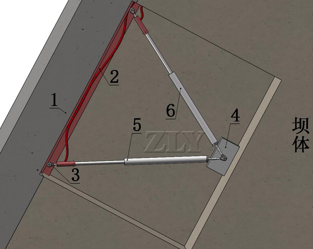 ZLY-。混凝土面板的拓空观测由两支位移计和一块固定基准板构成一个等边三角形的测量构件,主要观测混凝土面板与过渡料间垂直面板方向的变形“Y”和平行面板方向的变形“X”。
