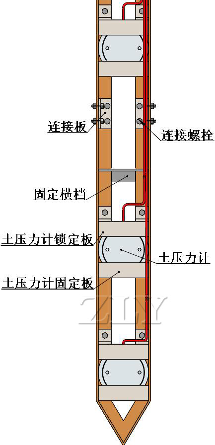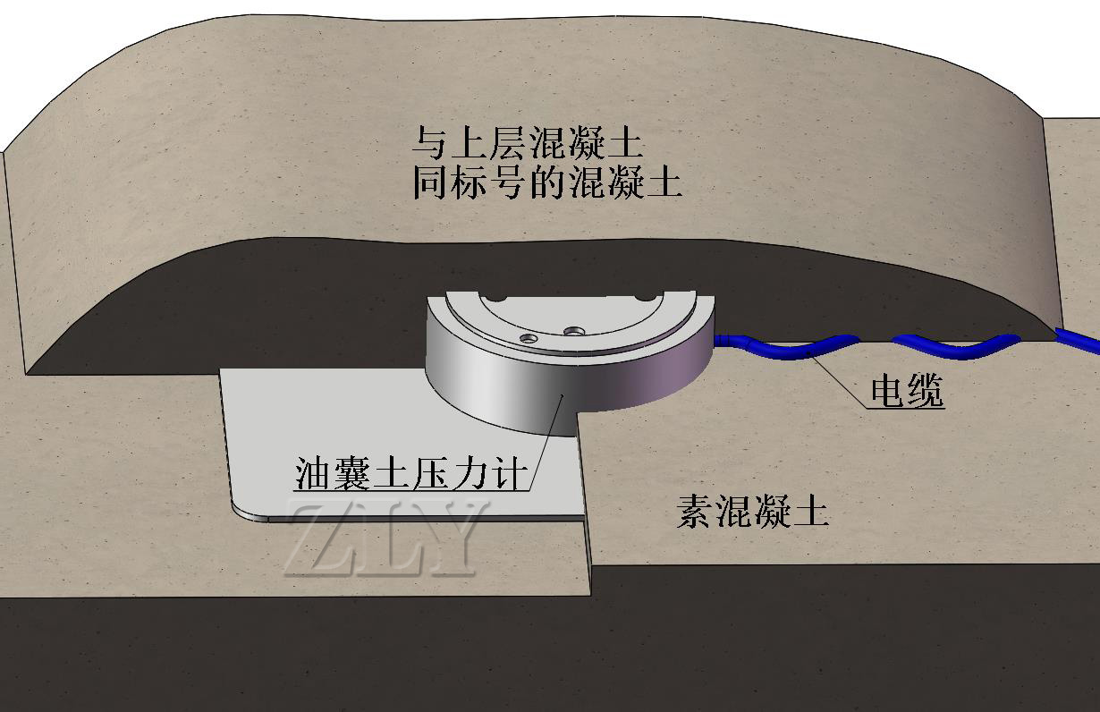 ZLY-V2000E型振弦式土压力计承接应力的盒体采用传统的液压囊作为一次应力感应体,并充分考虑此感应体与埋设点应力场的匹配;选用高精度小体积振弦式孔隙水压力计作为二次传感部件,特别适用于软土地基、素混凝土等工程中的土压力变化量的测量。